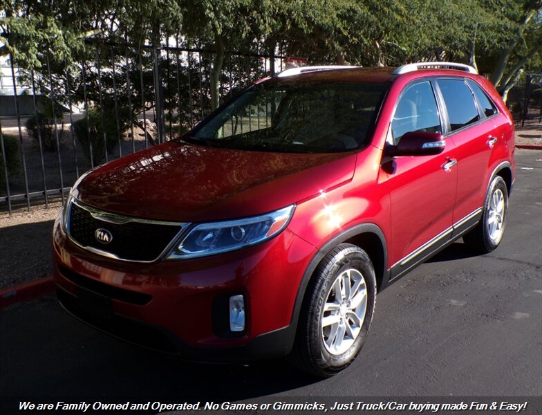 Check out this 2014 Kia Sorento LX SUV in Remington Red! Clean Carfax! Well Maintained and Serviced! Super Clean Inside and Out! Backup Camera and Bluetooth! Financing options available for all types of credit! Deal with some of the best banks in the Auto Industry! Trades Always Welcomed! We also offer up a great variety of warranties to fit your car needs and keep you protected. Want to be pre-approved before you head down? Easy online credit apps and complete inventory with additional pictures can be viewed at www.goodcaraz.com if you want to shop from home or just give us call (480) 890-5752. We are Family Owned and Operated. Never any games or gimmicks, just car & truck buying made easy and fun. Come on down and check us out.