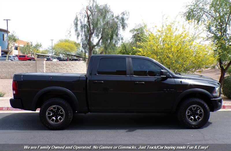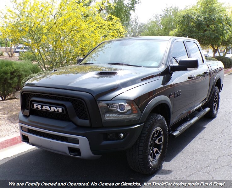 Check out this LOW Mile 2016 RAM 1500 Crew Cab Rebel 4X4 Truck in Brilliant Black Crystal! Super Clean RAM Rebel Truck! LOW Mile 4X4! LOW Miles & OFF Rd Ready! Fully Loaded w/ RAMBOX! Financing options available for all types of credit! Deal with some of the best banks in the Auto Industry! Trades Always Welcomed! We also offer up a great variety of warranties to fit your car needs and keep you protected. Want to be pre-approved before you head down? Easy online credit apps and complete inventory with additional pictures can be viewed at www.goodcaraz.com if you want to shop from home or just give us call (480) 890-5752. We are Family Owned and Operated. Never any games or gimmicks, just car & truck buying made easy and fun. Come on down and check us out.