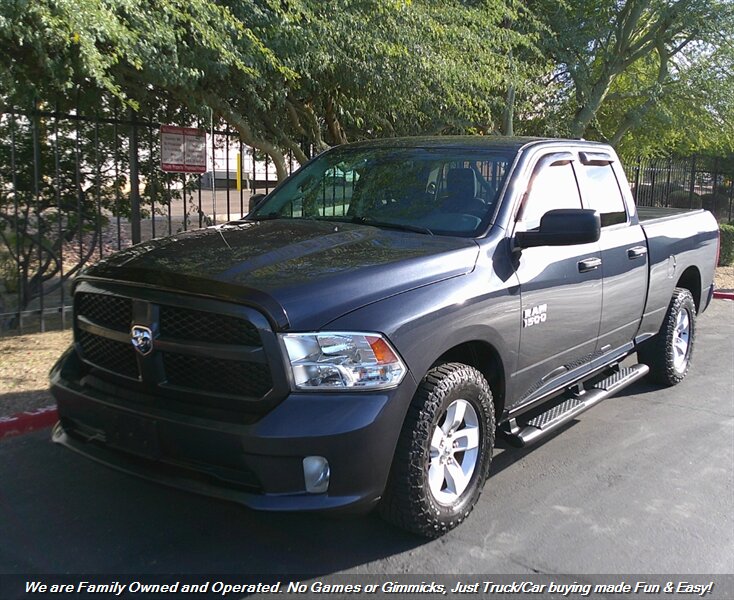 WOW-Check out this LOW Mile 2017 RAM 1500 Express Truck in Maximum Steel Metallic! One Owner RAM w/ ONLY 52K Miles! Clean Carfax! Well Maintained and Serviced RAM Truck! Super Clean Inside and Out! Financing options available for all types of credit! Deal with some of the best banks in the Auto Industry! Trades Always Welcomed! We also offer up a great variety of warranties to fit your car needs and keep you protected. Want to be pre-approved before you head down? Easy online credit apps and complete inventory with additional pictures can be viewed at www.goodcaraz.com if you want to shop from home or just give us call (480) 890-5752. We are Family Owned and Operated. Never any games or gimmicks, just car & truck buying made easy and fun. Come on down and check us out.