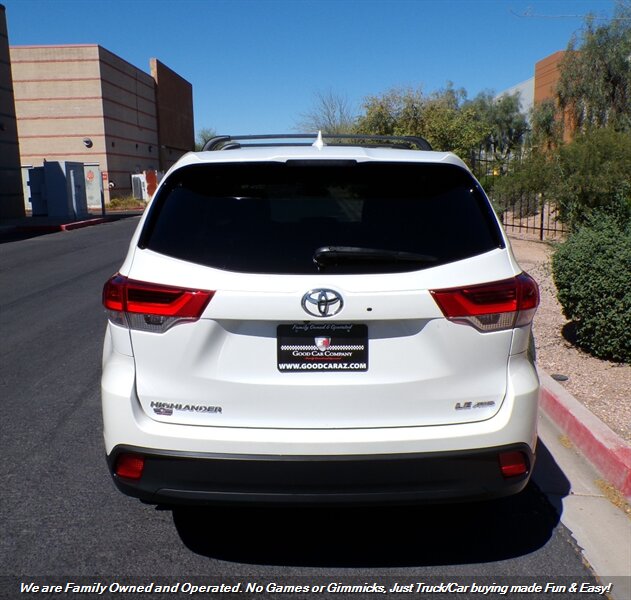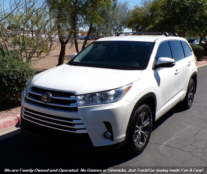 Check out this LOW Mile 2017 Toyota Highlander LE Plus in Blizzard Pearl! Clean Carfax! Super Clean AWD Sport Utility! Well Maintained and Serviced Toyota! Fully Loaded 3rd Row SUV! Financing options available for all types of credit! Deal with some of the best banks in the Auto Industry! Trades Always Welcomed! We also offer up a great variety of warranties to fit your car needs and keep you protected. Want to be pre-approved before you head down? Easy online credit apps and complete inventory with additional pictures can be viewed at www.goodcaraz.com if you want to shop from home or just give us call (480) 890-5752. We are Family Owned and Operated. Never any games or gimmicks, just car & truck buying made easy and fun. Come on down and check us out.