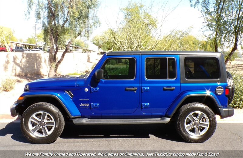 Check out this One Owner 2018 Jeep Wrangler Sahara in Ocean Blue Metallic! Clean Carfax! One Owner w/ Low Miles! Fully Loaded Hard Top Jeep! Financing options available for all types of credit! Deal with some of the best banks in the Auto Industry! Trades Always Welcomed! We also offer up a great variety of warranties to fit your car needs and keep you protected. Want to be pre-approved before you head down? Easy online credit apps and complete inventory with additional pictures can be viewed at www.goodcaraz.com if you want to shop from home or just give us call (480) 890-5752. We are Family Owned and Operated. Never any games or gimmicks, just car & truck buying made easy and fun. Come on down and check us out.