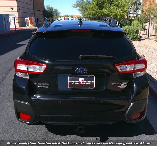 The 2018 Subaru Crosstrek Limited is a versatile compact SUV, finished in a sleek Black exterior with a matching Black interior. This model comes equipped with a 2.0L 4-cylinder engine paired with a continuously variable transmission (CVT), providing a balanced blend of power and efficiency. Factory features include Subaru's Symmetrical All-Wheel Drive system for enhanced traction, a power sunroof, and 18-inch alloy wheels. Inside, you'll find leather-trimmed upholstery, heated front seats, and a premium audio system with a 7-inch touchscreen display that integrates Apple CarPlay and Android Auto. Additional conveniences include a rearview camera, keyless entry, and adaptive cruise control, all contributing to a comfortable and safe driving experience. This vehicle is in excellent overall condition, making it a reliable choice for both urban and outdoor adventures. Financing options available for all types of credit! Deal with some of the best banks in the Auto Industry! Trades Always Welcomed! We also offer up a great variety of warranties to fit your car needs and keep you protected. Want to be pre-approved before you head down? Easy online credit apps and complete inventory with additional pictures can be viewed at www.goodcaraz.com if you want to shop from home or just give us call (480) 890-5752. We are Family Owned and Operated. Never any games or gimmicks, just car & truck buying made easy and fun. Come on down and check us out.