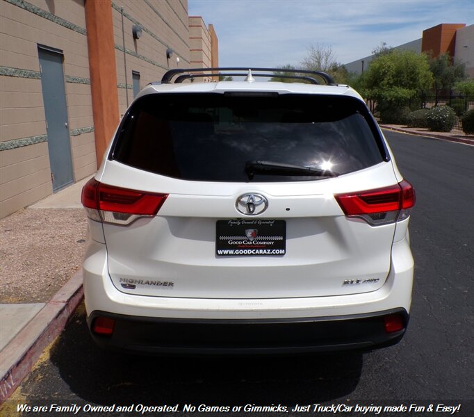 Check out this Super Clean 2019 Toyota Highlander XLE AWD Sport Utility in Blizzard Pearl! Fully Loaded 3rd Row SUV! Leather Seats, Moon Roof and Backup Camera! Well Maintained and Serviced Toyota! Financing options available for all types of credit! Deal with some of the best banks in the Auto Industry! Trades Always Welcomed! We also offer up a great variety of warranties to fit your car needs and keep you protected. Want to be pre-approved before you head down? Easy online credit apps and complete inventory with additional pictures can be viewed at www.goodcaraz.com if you want to shop from home or just give us call (480) 890-5752. We are Family Owned and Operated. Never any games or gimmicks, just car & truck buying made easy and fun. Come on down and check us out.