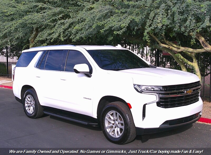 Check out this Fully Loaded 2021 Chevrolet Tahoe LT SUV! Clean Carfax! Well Maintained and Serviced! Super Clean Tahoe Inside and Out! Financing options available for all types of credit! Deal with some of the best banks in the Auto Industry! Trades Always Welcomed! We also offer up a great variety of warranties to fit your car needs and keep you protected. Want to be pre-approved before you head down? Easy online credit apps and complete inventory with additional pictures can be viewed at www.goodcaraz.com if you want to shop from home or just give us call (480) 890-5752. We are Family Owned and Operated. Never any games or gimmicks, just car & truck buying made easy and fun. Come on down and check us out.